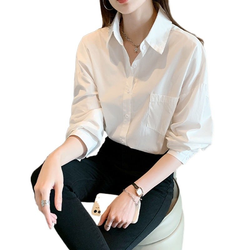 Camisa blanca de algodón puro para mujer, nueva sensación de diseño, blusa de nicho, camisa de fondo informal, camisa de manga larga de todo fósforo